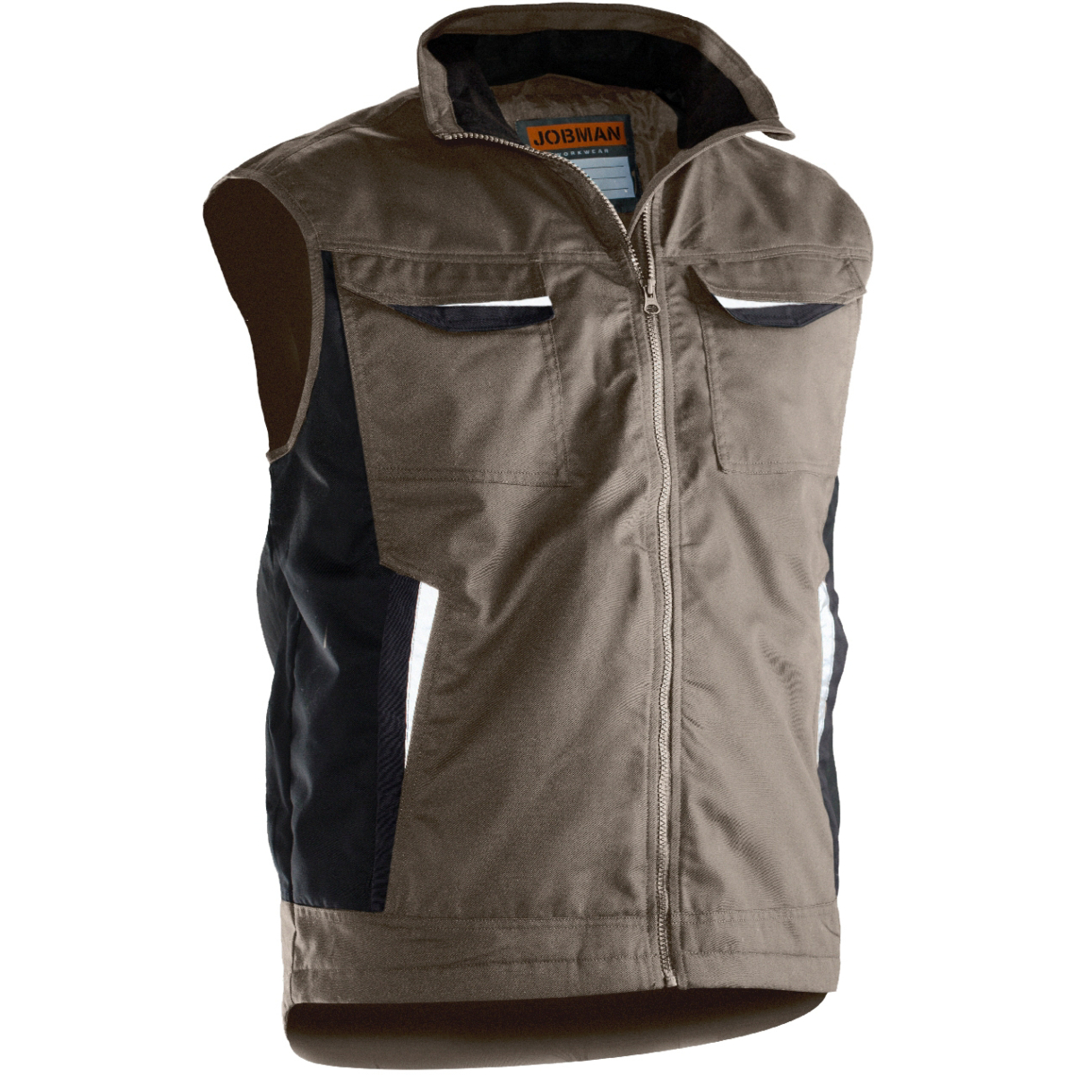 Steppgefütterte Dienstweste aus pflegeleichtem Polyester/Baumwolle. Zwei Brusttaschen mit Klettverschluss, D-Ring an der linken Brusttasche für Ausweis. Innenkragen aus gebürstetem, weichem Polyester. Vordertaschen mit Reißverschluss. Zwei Innentaschen, eine große für Dokumente und eine für ein Mobiltelefon. Verstellbarer Saum. Reflektierende Streifen vorne auf der Klappe. Verlängerter Rücken mit reflektierenden Paspeln.