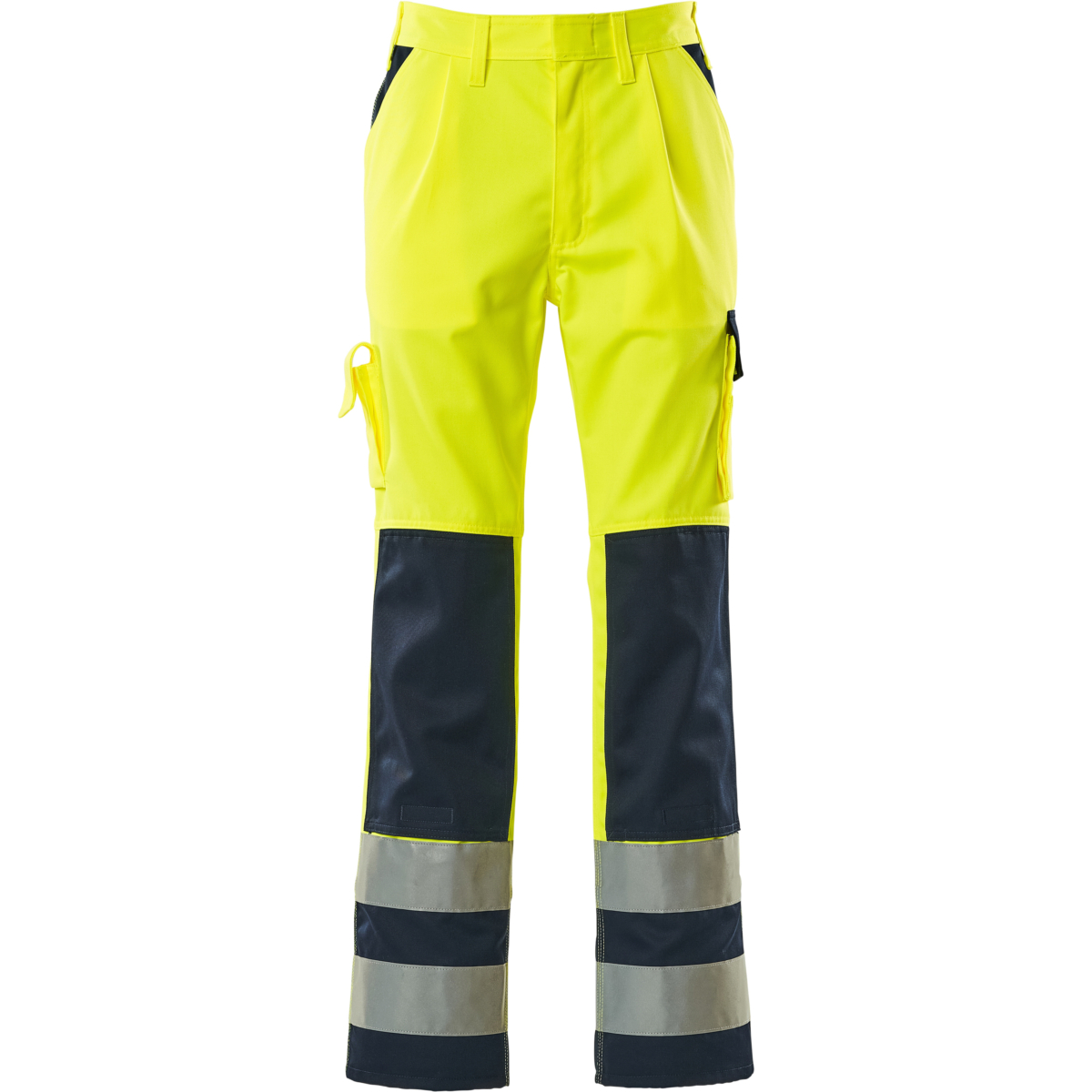 Fluoreszierend und mit reflektierendem Band. Die Oberflächenbehandlung macht das Produkt schmutzabweisend. Zweifarbig. Dreifachnähte an Bein und Schritt. Gürtelschlaufen. Hosenschlitz mit Reißverschluss. Vordertaschen. Verstärkte Gesäßtaschen – eine davon mit Patte und Klettverschluss. Verstellbare Hammerschlaufe. Oberschenkeltasche mit mehreren Fächern, Patte und verstellbarem Klettverschluss. Zollstocktasche. Oberschenkel-Handytasche mit Patte und verstellbarem Klettverschluss. Stifttaschen. Kniepolstertaschen. Wir empfehlen für dieses Modell die Knieschoner 00718-100, 50451-916 und 20118-915. Zusammen mit Knieschoner Typ LONG nach EN 14404 mitzertifiziert.