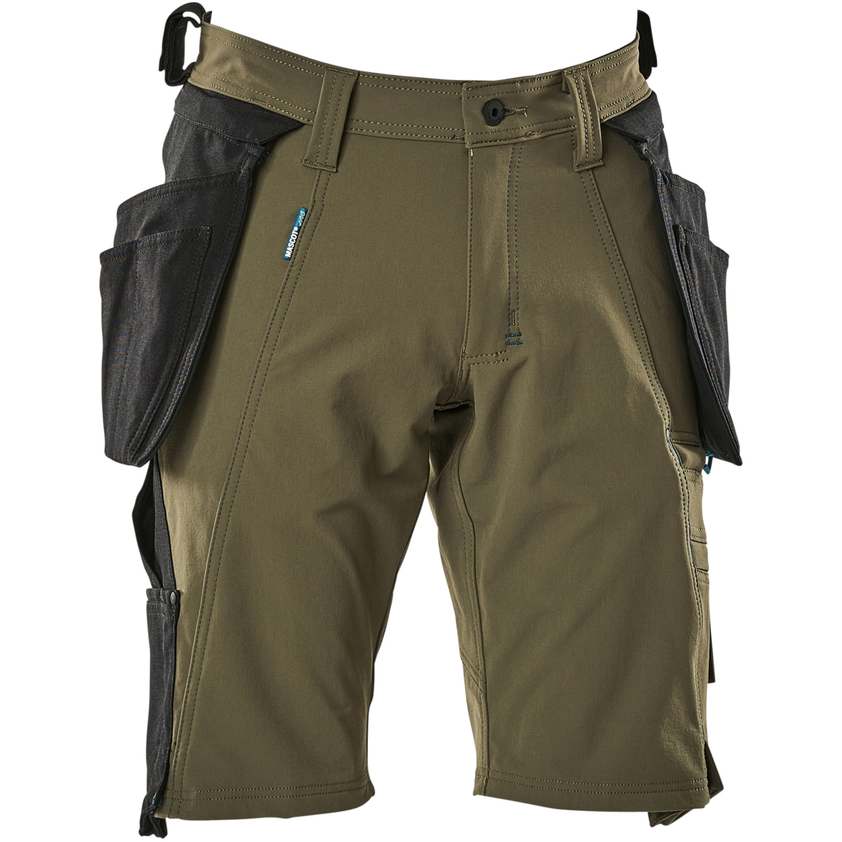 Hat eine wasserabweisende Oberfläche. ULTIMATE STRETCH-Gewebe, das leicht und äußerst langlebig ist. Der Stoff ist kaum auf der Haut zu spüren, da die Taschen in das Design integriert sind. Doppelnähte an Bein und Schritt. Niedrige Taille. Gürtelschlaufen. Hosenschlitz mit Reißverschluss. Abnehmbare Holstertaschen aus strapazierfähigem CORDURA®. Vordertaschen. Gesäßtaschen. Werkzeuggurt an beiden Seiten der Taille. Oberschenkeltasche mit Handytasche. Zollstocktasche aus CORDURA® mit zusätzlichen Taschen. Knopf zur Messerbefestigung.