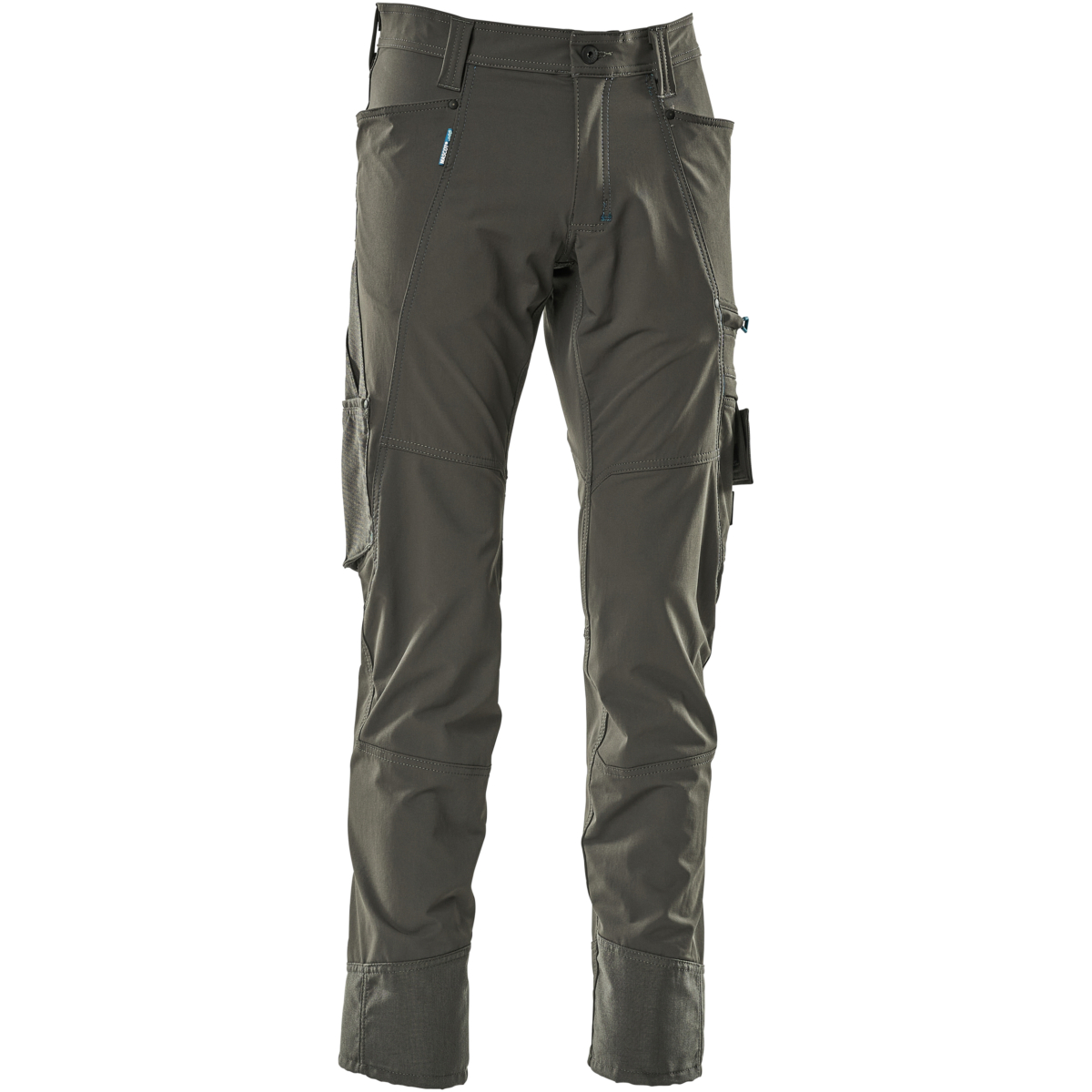 Hat eine wasserabweisende Oberfläche. ULTIMATE STRETCH-Gewebe, das leicht und äußerst langlebig ist. Der Stoff ist kaum auf der Haut zu spüren, da die Taschen in das Design integriert sind. Doppelnähte an Bein und Schritt. Niedrige Taille. Ergonomisch geformtes Hosenbein. Gürtelschlaufen. Hosenschlitz mit Reißverschluss. Vordertaschen. Gesäßtaschen. Oberschenkeltasche mit Handytasche und integriertem Ausweishalter. Abnehmbarer Ausweishalter. Zollstocktasche aus CORDURA® mit zusätzlichen Taschen. Reflektoren.