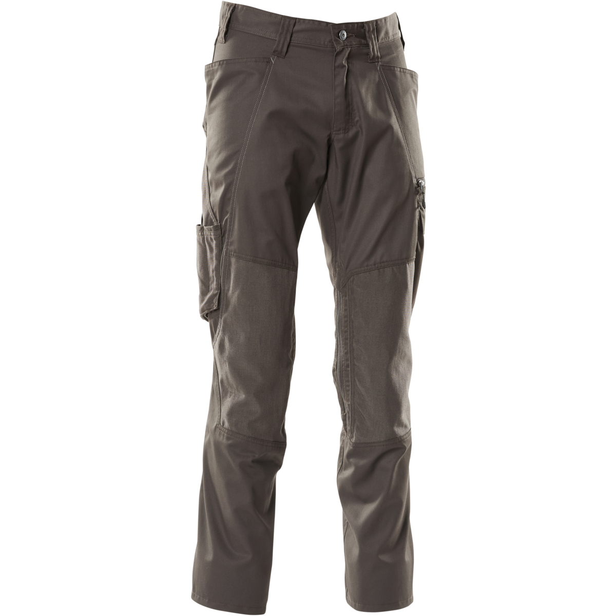 Einfarbig. Leichter Stoff. Doppelnähte an Bein und Schritt. Niedrige Taille und formgeschnittener Taillenbund. Ergonomisch geformtes Hosenbein. Gürtelschlaufen. Hosenschlitz mit Reißverschluss. Vordertaschen. Gesäßtaschen. Oberschenkeltasche mit Handytasche und Klappe mit verstecktem Druckknopf und integriertem Ausweishalter. Abnehmbarer Ausweishalter. Mit CORDURA®-Gewebe verstärkte Zollstocktasche. Verstellbare Kniepolstertaschen aus strapazierfähigem CORDURA® (500 D). Einfache individuelle Anpassung der Höhe der Kniepolstertasche. Mit Aufdruck und Reflektoren. Wir empfehlen für dieses Modell die Knieschoner 00418-100, 00718-100, 50451-916 und 20118-915. Mitzertifiziert zusammen mit Kniepolstertyp KURZ oder LANG gemäß EN 14404.