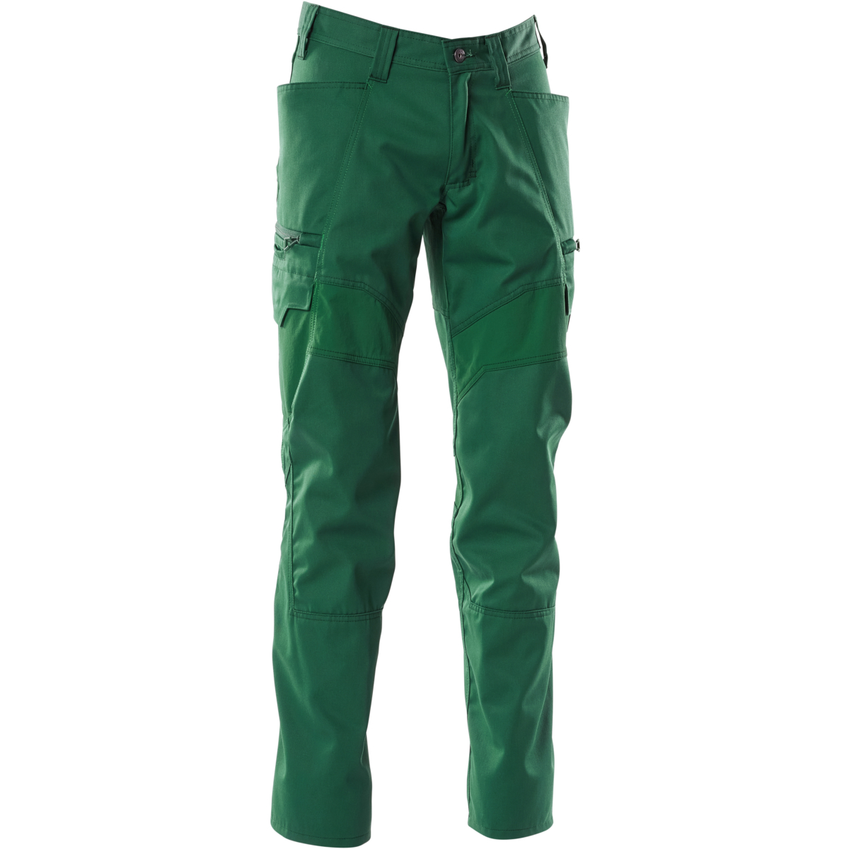 Stretchstoff an Teilen des Produkts. Kombination aus der leichten Stoffqualität 442 und ULTIMATE STRETCH in Stoffqualität 511. Die Taschen sind im Design integriert. Doppelnähte an Bein und Schritt. Niedrige Taille. Ergonomisch geformtes Hosenbein. Gürtelschlaufen. Hosenschlitz mit Reißverschluss. Vordertaschen. Gesäßtaschen. Oberschenkeltasche mit Handytasche und Klappe mit verstecktem Druckknopf und integriertem Ausweishalter. Abnehmbarer Ausweishalter. Oberschenkeltasche mit Zollstocktasche. Mit Druck und Reflektoren.
