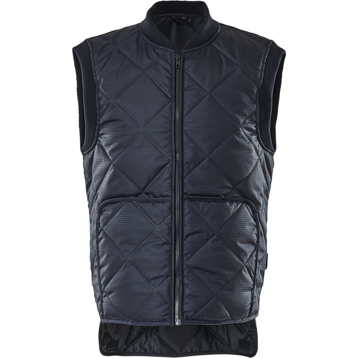 Ultraschallverschweißtes Polyester mit isolierender Polyesterwatte. Reißverschluss direkt durch. Zusätzlicher Stoff über den Nieren für zusätzlichen Schutz. Rippstrick am Hals, hinten an der Taille und an den Armlöchern. Vordertaschen mit Randeinfassung.