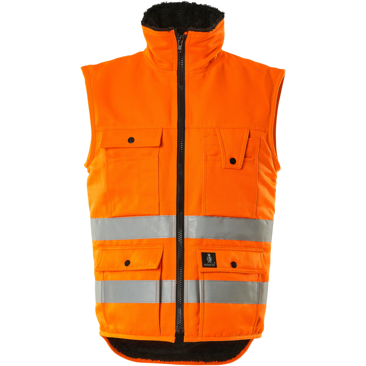 Fluoreszierend und mit reflektierendem Band. Wasserabweisend. Florfutter. Reißverschluss direkt durch. Brusttasche mit Patte und Druckknopf. D-Ring. Handy-Brusttasche mit verstellbarer Klappe. Stifttaschen. Vordertaschen – zwei offene und zwei mit Patte und Druckknopf. Innentasche – eine mit Reißverschluss und eine mit Klettband.