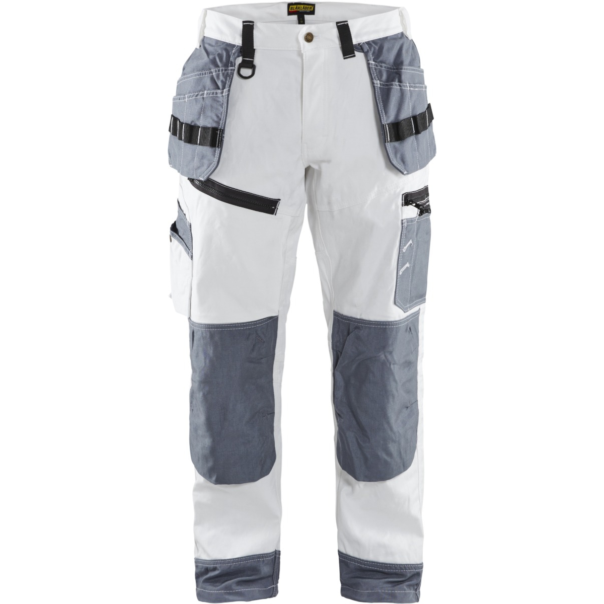 Jetzt können Sie Malerhosen aus 100 % Baumwolle tragen, ohne befürchten zu müssen, dass Farbe auf Ihre Haut eindringt. Der Stoff verfügt über eine hervorragende Absorptionsfähigkeit und ist an wichtigen Stellen doppellagig, um dies zu verhindern. Diese auf X1500 basierenden Hosen sind für Maler, Stuckateure und Maurer konzipiert und verfügen über spezielle Taschen für Werkzeuge wie Pinsel, Spachtelmesser und Spachtel.